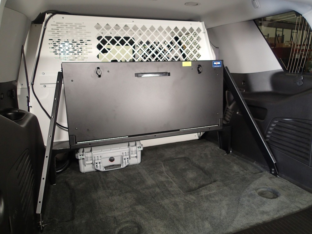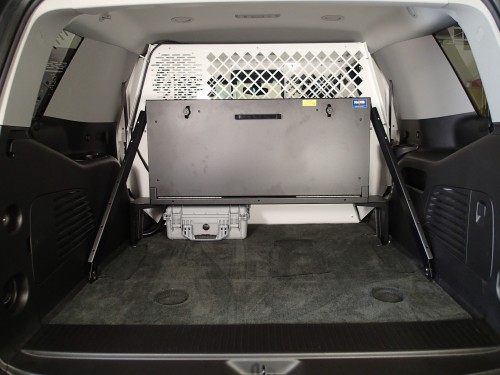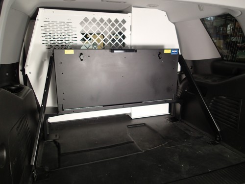 - Provides mounting of equipment in utility vehicle cargo area behind rear seat or against partition/K9 transport