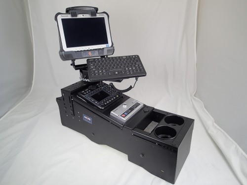 Console, Vehicle specific, 21" Total mounting space, 12 Degrees, Housing complete, Ford Interceptor Utility Police Vehicle 13-16,