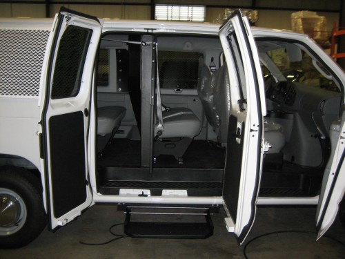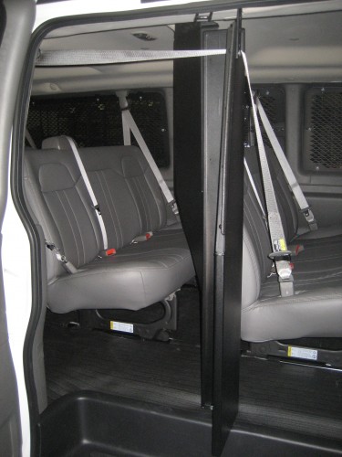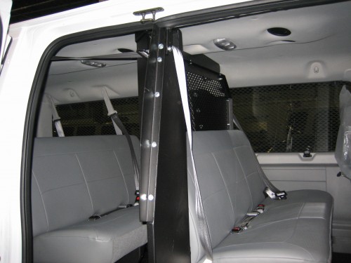 • The partition wraps around the bench seat to allow for passenger access to the rearward bench seats