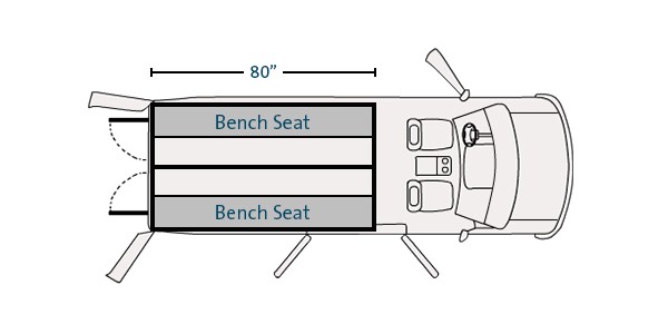 - Storage area: 50" between front seats and bulkhead
